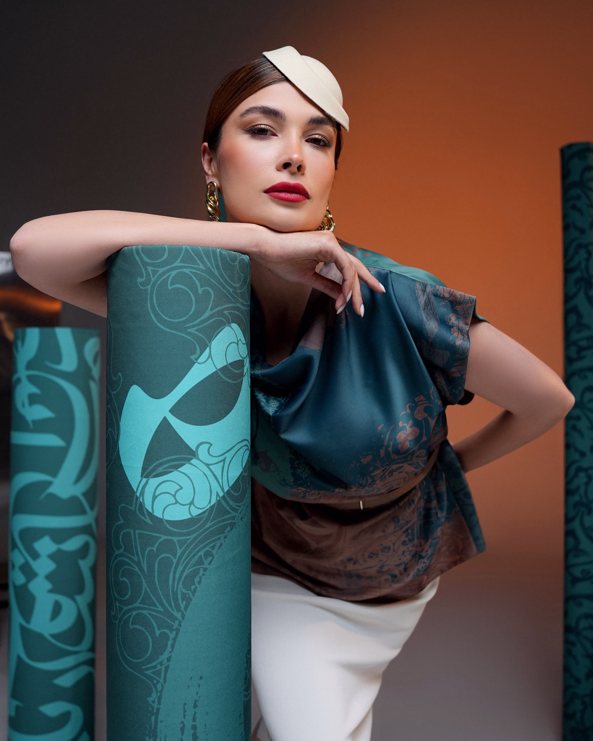 يُجسّد تصميم “كيمياء الروح”، عبر مزيج من درجات الأزرق المخضر (التيل)، والفيروزي، والألوان الترابية، لمحةً من عالمنا الداخلي. يرمز اللون الأخضر إلى الحياة والنمو، بينما تشير الدرجات الترابية إلى عمق الروح وأصالتها. هذه القطعة، التي تشبه عين القلب وهي تتأمل أسرار العالم الخفية، هي دعوة لفتح نافذة على مملكة العشق وتصوراته النقية. تصميم “كيمياء الروح” هو بمثابة قصيدة تُنشد في كل قلب بهدوءٍ ورقة، لتخبره بأن في مملكة العشق ستشهد كل ما هو خفيٌ من الجمال.
